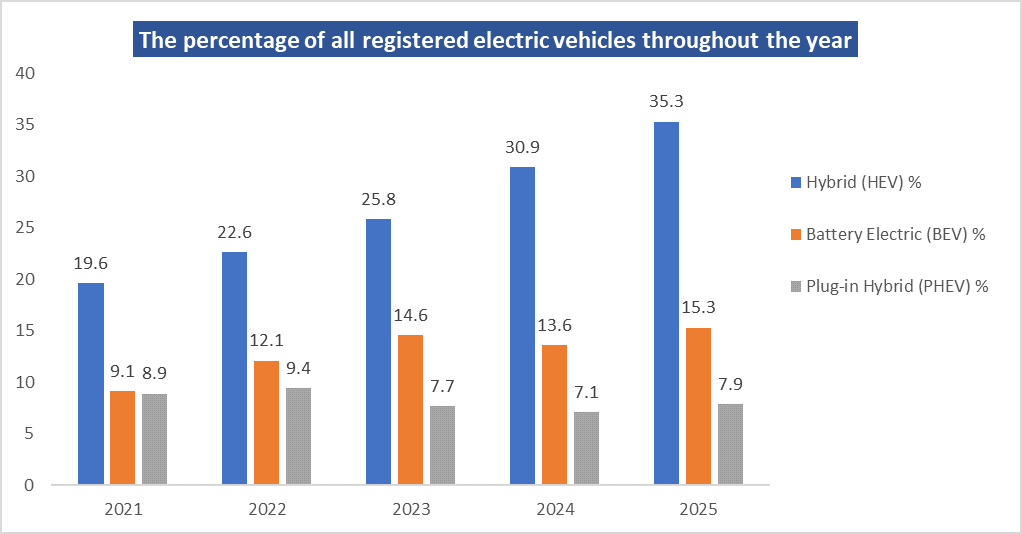 The recent surge in electric vehicle registrations across Europe is not only marked by a record number of battery electric vehicles but also reflects a shifting mix in market composition, as illustrated by the latest data on vehicle types. Between 2021 and 2025, hybrid electric vehicles (HEVs) have seen a remarkable rise in market share from 19.6% to 35.3%, signaling growing consumer confidence in hybrid models that balance electric efficiency with extended range. Meanwhile, battery electric vehicles (BEVs), which are at the core of Europe’s EV boom, steadily increased their share to 15.3% in 2025, driven by the affordability of new models and expanded charging infrastructure highlighted in the blog. Plug-in hybrid electric vehicles (PHEVs) continue to hold a consistent, though slightly fluctuating, position, serving as a crucial transitional technology for consumers navigating the shift to full electrification. This evolving EV landscape underscores the dynamic and multifaceted nature of Europe’s transition to cleaner, sustainable transport options.