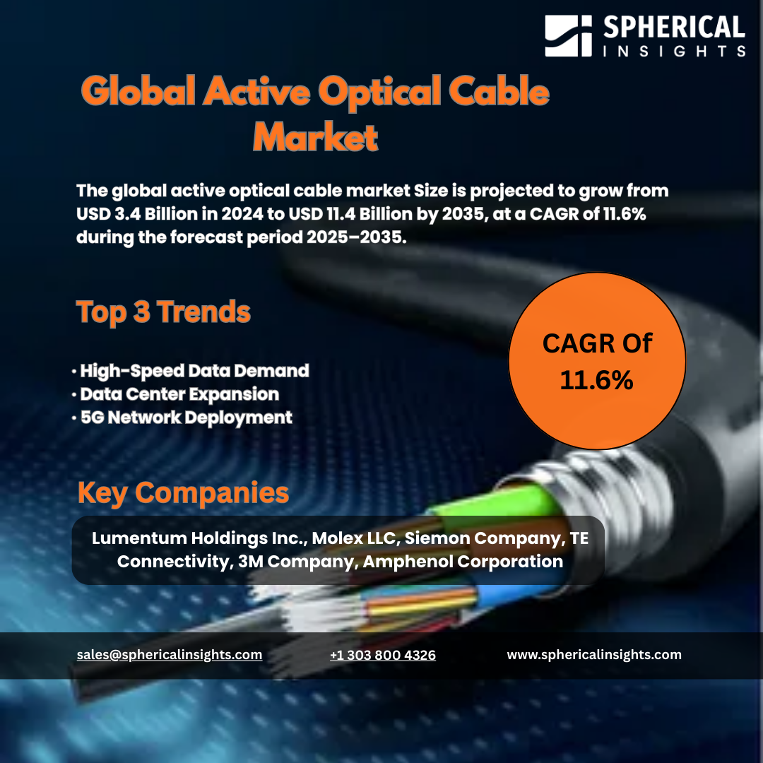 The active optical cable market throughout the world experiences ongoing expansion because high-speed data transmission requirements increase and data centers develop rapidly and organizations adopt cloud computing together with modern networking solutions. Active optical cables provide data centers and telecommunications networks and high-performance computing systems with efficient and reliable connectivity solutions. Modern digital infrastructure depends on their ability to transmit data over extended distances while using minimal energy and supporting high data rates. Amphenol Corporation and Broadcom Inc. and Lumentum Holdings Inc. and Molex LLC and Sumitomo Electric Industries Ltd. lead the way in developing optical connectivity solutions by expanding their technological capabilities and global presence to meet rising market demand. The system of active optical cables enables organizations to transmit information at high speeds while providing support for advanced networking systems and creating stronger digital links between different regions of the world.