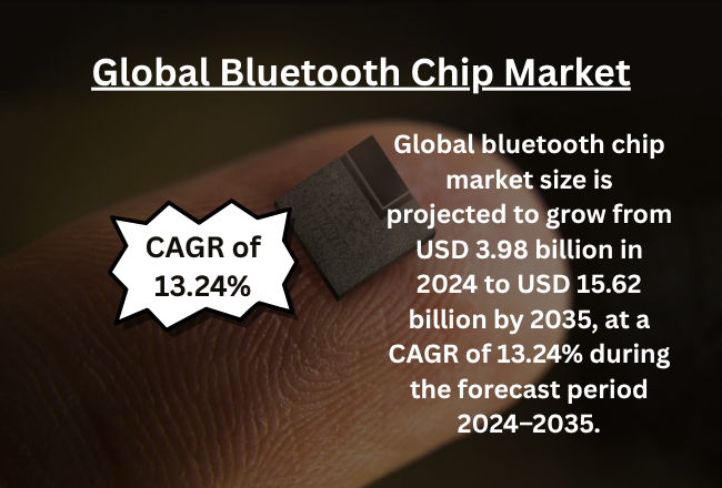 According to a research report published by Spherical Insights & Consulting, the global bluetooth chip market size is projected to grow from USD 3.98 billion in 2024 to USD 15.62 billion by 2035, at a CAGR of 13.24% during the forecast period 2024–2035. The global bluetooth chip market is driven by rising adoption of IoT devices, increasing demand for wireless connectivity in consumer electronics, growth of smart homes and wearables, expanding automotive infotainment systems, and advancements in low-power technologies. Additionally, the proliferation of Industry 4.0 and healthcare monitoring devices further accelerates market growth.