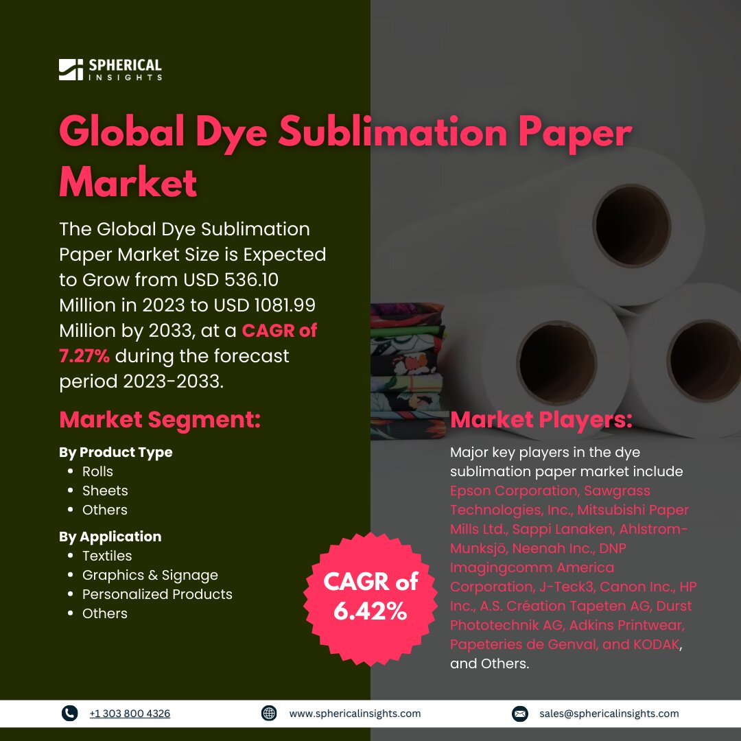 Global Dye Sublimation Paper Market Size to worth USD 1081.99 Million by 2033