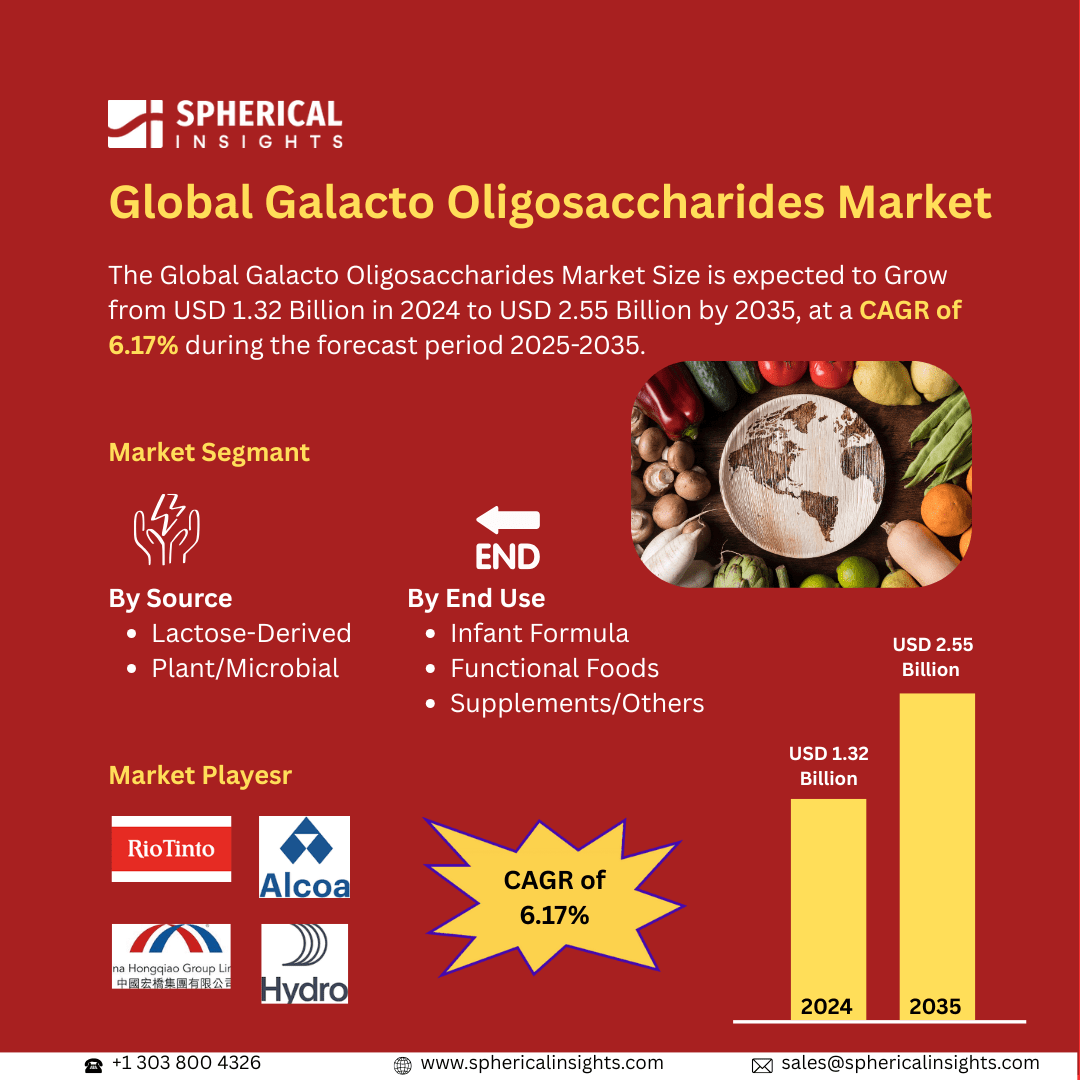 According to Decision Advisor, The Global Galacto Oligosaccharides Market Size is expected to Grow from USD 1.32 Billion in 2024 to USD 2.55 Billion by 2035, at a CAGR of 6.17% during the forecast period 2025-2035. Increasing consumer awareness about gut health, rising demand for prebiotics in infant formula, and growing functional food markets are key drivers for the galacto oligosaccharides market.
