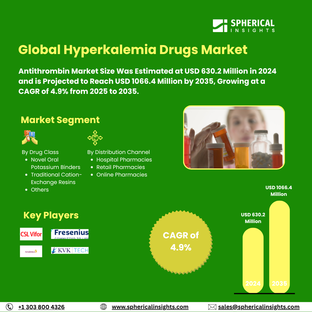 The Global Hyperkalemia Drugs Market Size Was Estimated at USD 1.13 Billion in 2024 and is Projected to Reach USD 4.78 Billion by 2035, Growing at a CAGR of 14.01% from 2025 to 2035. Growing awareness of the risks of hyperkalemia, the incidence of chronic renal disease and heart failure, the ageing population, improvements in medication formulations, and the expansion of access to specialist healthcare around the world are all factors driving the market for hyperkalemia drugs.