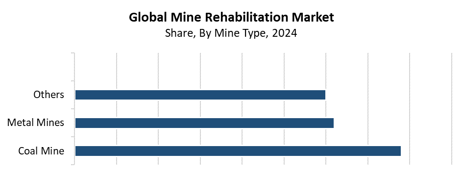 The coal mines segment led the global mine rehabilitation market with the largest revenue share of 39.2% in 2024. The leading factor which drives this dominance stems from the extensive environmental destruction that coal mining operations cause. They require extensive restoration projects to bring back vegetation, soil stability, and water quality. The growing number of abandoned coal mines, together with strict government requirements for mine shutdowns and land recovery, has driven up the demand for rehabilitation services. The three major mining countries, China, India, and Australia, have implemented strict environmental rules to ensure that coal mining areas will recover their natural state. Mining companies, together with regulatory agencies, will continue to support sustainable mine closure practices, which will help coal maintain its market dominance.