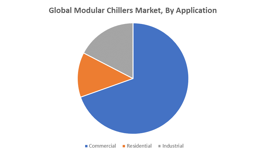 The air-cooled segment is expected to grow at a considerable CAGR over the forecast period due to its advantages like easier installation, lower maintenance costs, and suitability for areas with limited water availability. Its energy-efficient operation and adaptability to various applications in commercial and industrial sectors are driving increased adoption. Additionally, air-cooled modular chillers align well with sustainability goals, making them a preferred choice amid tightening environmental regulations and growing demand for flexible, scalable cooling solutions.