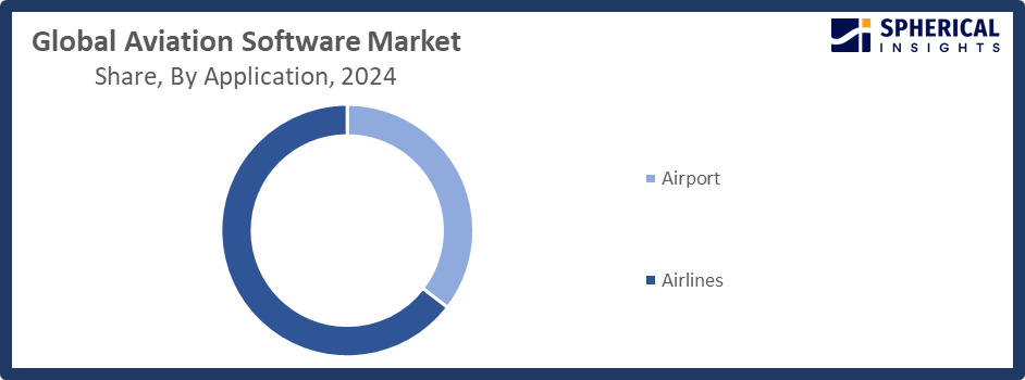 Based on the application, the aviation software market is divided into airport, and airlines. Among these, the airlines segment accounted for the largest share in 2024 and is anticipated to grow at a remarkable CAGR during the forecast period. Airlines, which are the backbone of international air transport, need sophisticated software solutions for a variety of tasks, such as crew management, maintenance, flight operations, and customer support.