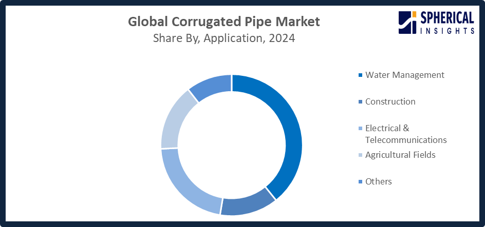 Based on the application, the corrugated pipe market is divided into water management, construction, electrical & telecommunications, agricultural fields, and others. Among these, the water management segment accounted for the highest market revenue in 2024 and is anticipated to grow at a significant CAGR during the forecast period. Inadequate drainage infrastructure, urban flooding, and growing worldwide worries over water scarcity are driving the water management segment's expansion.