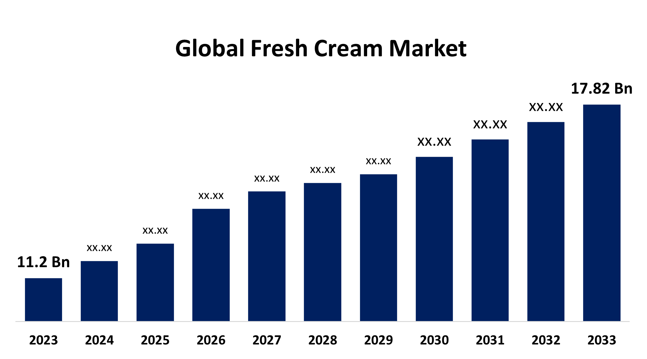 According to a research report published by Spherical Insights & Consulting, the Global Fresh Cream Market is Expected to Grow from USD 11.2 Billion in 2023 to USD 17.82 Billion by 2033, at a CAGR of 4.75% during the forecast period 2023-2033.