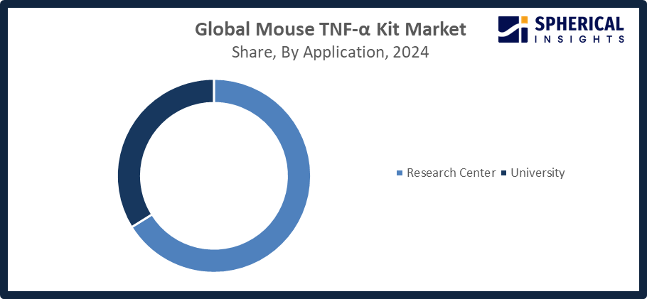 Based on the application, the mouse TNF-α kit market is divided into research centers and university. Among these, the research center segment accounted for the highest market revenue in 2024 and is anticipated to grow at a significant CAGR during the forecast period. Large-scale investigations into cytokine biology, inflammatory disease mechanisms, and preclinical testing are driven by both public and private research organizations, which calls for reliable TNF-α measurement kits.