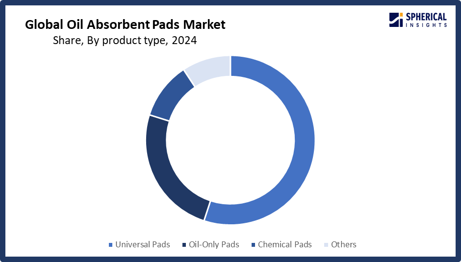 Based on the product type, the oil absorbent pads market is divided into universal pads, oil-only pads, chemical pads, and others. Among these, the oil-only pads segment dominated the market in 2024 and is projected to grow at a substantial CAGR during the forecast period. The segment's development is stimulated because they are both hydrophobic and oleophilic, meaning they absorb oil while resisting water. These pads are very useful for spills, refineries, and ships. They also reduce waste, allow for quicker cleanups, adhere to stringent environmental standards, and end up being less expensive over time than universal varieties.