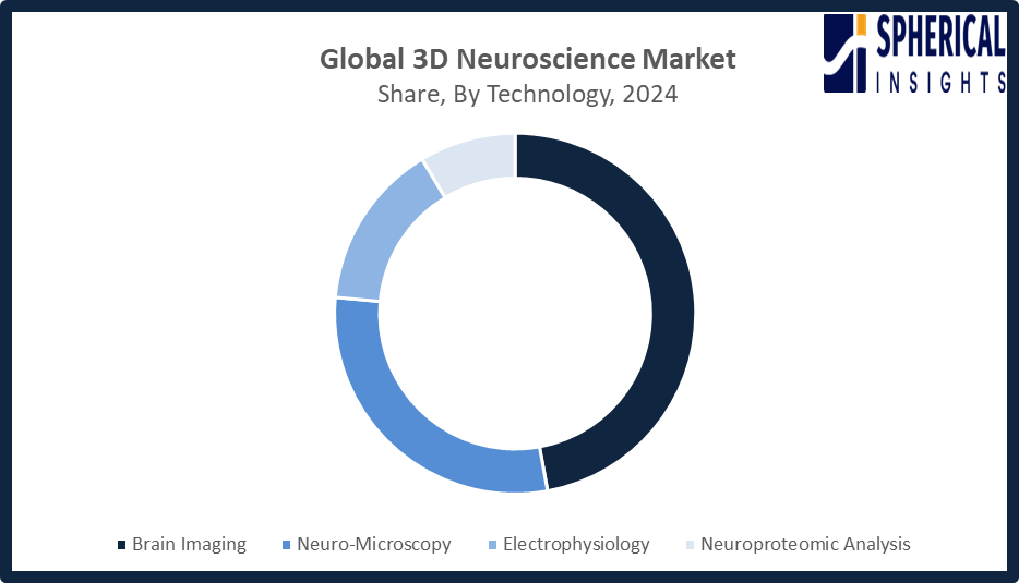 Based on the technology, the 3D neuroscience market is divided into brain imaging, neuro-microscopy, electrophysiology, and neuroproteomic analysis. Among these, the brain imaging segment dominated the market in 2024 and is projected to grow at a substantial CAGR during the forecast period. This segment dominated market growth due to the increasing need for high-resolution, three-dimensional visualization of neural structures and brain activity. The increased prevalence of neurological disorders such as Alzheimer's disease, Parkinson's disease, and epilepsy accelerated the use of advanced imaging technologies such as 3D MRI, fMRI, and PET. Additionally, the integration of AI and machine learning further improved image analysis, with expanding research and clinical applications fueling robust market growth.
