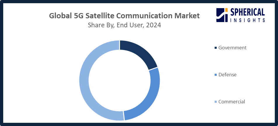 Based on the end user, the 5G satellite communication market is divided into government, defense, and commercial. Among these, the commercial segment accounted for the highest market revenue in 2024 and is anticipated to grow at a significant CAGR during the forecast period. Growing investments from commercial operators, technological developments in satellite networks, and the convergence of satellite and terrestrial 5G infrastructures to provide scalable, dependable, and low-latency communication services all contribute to the commercial segment's expansion.