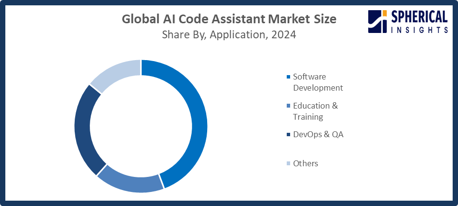Based on the application, the AI code assistant market is divided into software development, education & training, devOps & QA, and others. Among these, the software development segment accounted for the highest market revenue in 2024 and is anticipated to grow at a significant CAGR during the forecast period. The strong reliance on AI-driven solutions to streamline the software development lifecycle, cut down on coding time, and enhance code quality is reflected in the software development segment position. AI code assistants are used by software engineers to automate repetitive chores including debugging, code restructuring, and improvement suggestions.