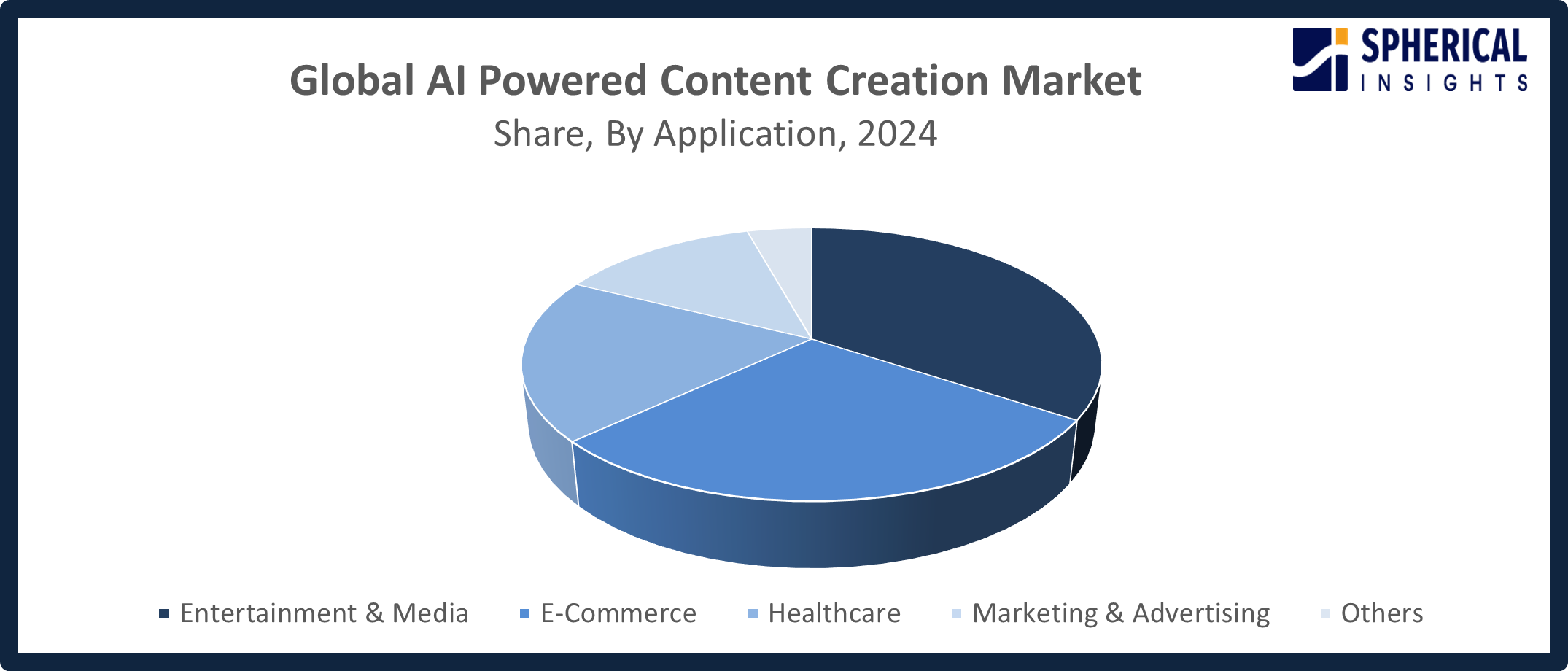 Based on the application, the AI powered content creation market is divided into entertainment & media, e-commerce, healthcare, marketing & advertising, and others. Among these, the entertainment & media segment accounted for the highest market revenue in 2024, approximately 30%, and is anticipated to grow at a significant CAGR during the forecast period. High volume demand content requirements, adoption of generative AI tools for producing scripts, images, and videos, a cost-efficient solution, and enables creation of personalized content are bolstering the entertainment & media market.