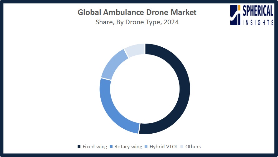 Based on the drone type, the Global Ambulance Drone Market is divided into fixed wing, rotary-wing, hybrid VTOL, and others. Among these, the fixed-wing segment dominated the market in 2024 and is projected to grow at a substantial CAGR during the forecast period. The segment growth of the ambulance drone market operates as the dominant force because it delivers superior long-range capabilities, fast operational speed and effective performance in handling extensive rural and remote areas. Their aerodynamic design provides extended flight time and increased payload capacity, which makes them perfect for delivering blood and vaccines and vital medical supplies across long distances.