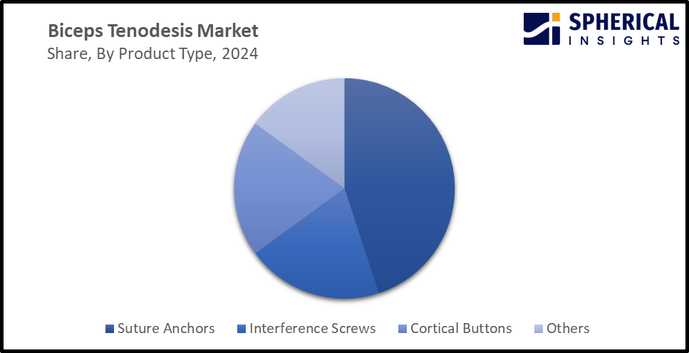 Based on the product type, the biceps tenodesis market is divided into suture anchors, interference screws, cortical buttons, and others. Among these, the suture anchors segment dominated the market with the largest market revenue share of nearly 40-70% in 2024 and is projected to grow at a substantial CAGR during the forecast period. In the procedure, suture anchors are inserted through the subclavian portal, then through the biceps tendon, and into the bone. The increased popularity of suture anchor in arthroscopy treatments, owing to their superior strength, is contributing to driving the segmental market growth.