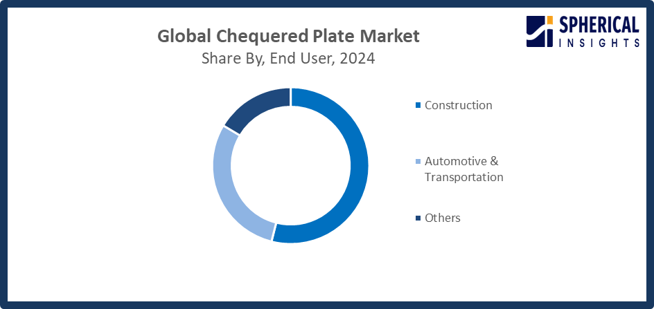 Based on the end user, the chequered plate market size is divided into construction, automotive & transportation, and others. Among these, the construction segment accounted for the highest market revenue in 2024 and is anticipated to grow at a significant CAGR during the forecast period. Chequered plates are widely utilized in construction for flooring, staircases, walkways, platforms, and ramps due to their high strength, durability, and anti-slip properties. Rapid urbanization, growing investments in commercial and industrial buildings, and large-scale infrastructure development projects have significantly increased demand from the construction sector.
