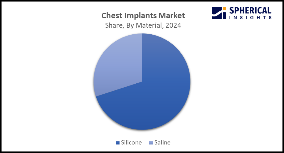 Based on the material, the chest implants market size is divided into silicone and saline. Among these, the silicone segment dominated the market with a major share of over 80% in 2024 and is projected to grow at a substantial CAGR during the forecast period. Silicone implants are the most common choice of patients and surgeons owing to their various benefits, like being lightweight, having a natural look, firm grip, and flexibility. Women’s silicone implants are made of silicone gel, while men’s silicone implants are made of solid silicone, with zero silicone leakage. Further, ongoing innovations in silicone technology for enhancing implant safety, durability, and aesthetic results, along with the surging development of next-generation silicone implants, are responsible for driving segmental market growth.