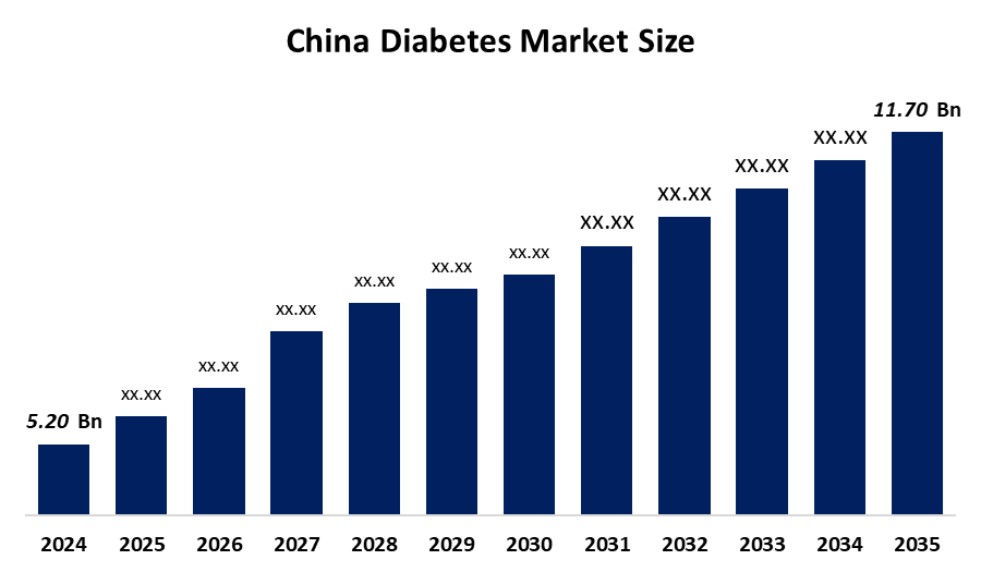What is the size of the China diabetes market?China diabetes market is expected to grow from USD 5.20 billion in 2024 to USD 11.70 billion by 2035, growing at a CAGR of 7.65% during the forecast period 2025-2035.