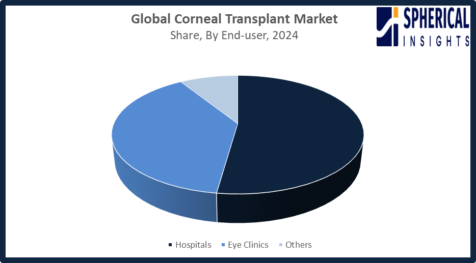Based on the end-user, the corneal transplant market is divided into hospitals, eye clinics, and others. Among these, the hospitals segment accounted for the highest market revenue in 2024 and is anticipated to grow at a significant CAGR during the forecast period. The segment of hospitals is one of the major factors driving growth in the corneal transplant market, driven by advanced surgical facilities, the availability of specialized ophthalmic surgeons, and comprehensive post-operative care. Hospitals receive higher volumes of complex procedures and also provide access to advanced technologies, which, in turn, have made hospitals a better and more preferred end-user setting for performing corneal transplants, thereby driving significant market expansion.