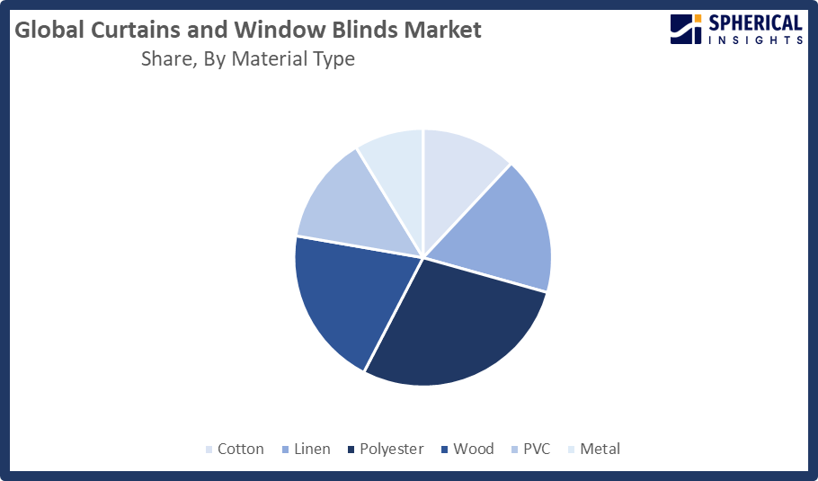 Based on the material type, the curtains and window blinds market is divided into cotton, linen, polyester, wood, PVC, and metal. Among these,the polyester segment dominated the market in 2024 and is projected to grow at a substantial CAGR during the forecast period. Polyester is the main material in the market for window blinds and curtains because it is inexpensive, durable, and versatile. It is produced predominantly in Latin America and Asia, and is resistant to mould, moisture, fading, wrinkles, and abrasion. Polyester is ideal for long-lasting, energy-efficient, and stylish window coverings because it can be blended with other materials, comes in many colours and patterns, and has finishes for UV protection, thermal insulation, or blackout properties. Its effectiveness, due to its durability, low cost, easy maintenance, and design flexibility, has led to its popularity in residential and commercial specifications.