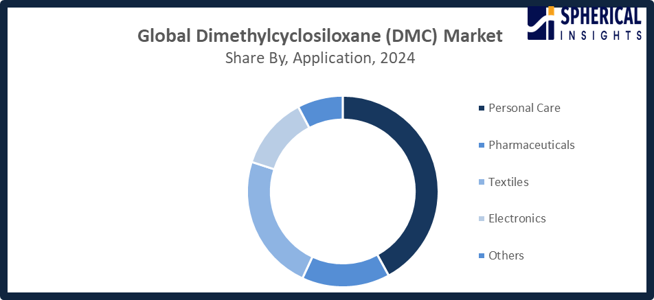 Based on the application, the dimethylcyclosiloxane (DMC) market is divided into personal care, pharmaceuticals, textiles, electronics, and others. Among these, the personal care segment accounted for the highest market revenue in 2024 and is anticipated to grow at a significant CAGR during the forecast period. The growing need for skincare and cosmetics items, the personal care segment dominates the DMC market's application landscape. The demand for DMC is further highlighted by the ongoing consumer trend toward high-performance, natural, and organic beauty products, as it meets the need for safe yet effective ingredients in personal care formulations.