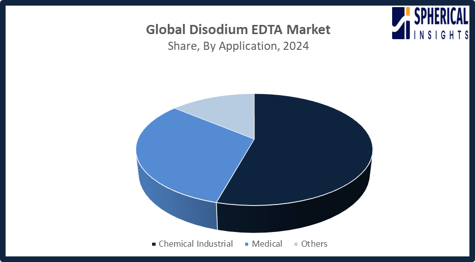 Based on the application, the Disodium EDTA Market Size is divided into chemical industrial, medical, and others. Among these, the chemical industrial segment accounted for the highest market revenue in 2024 and is anticipated to grow at a significant CAGR during the forecast period. The chemical industrial segment is growing in the market due to the critical disodium EDTA as a chelating agent in many processes, such as water treatment, processing of metals, and manufacturing of detergents. This chemical is indispensable for industries regarding ecological sustainability, protection of the environment, and enhancement of the quality of products, as it can bind metal ions effectively, which, in turn, drives its demand incessantly.