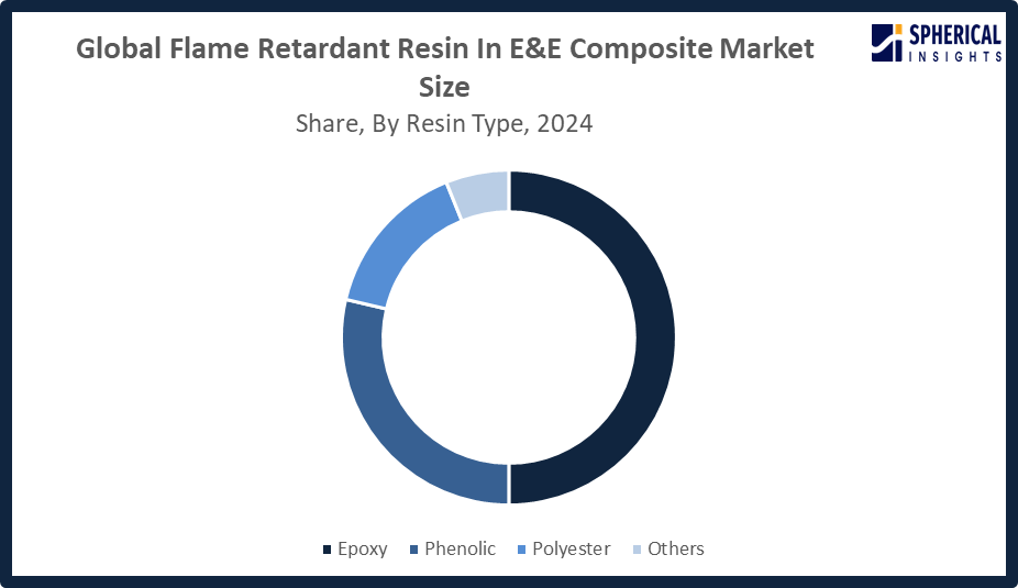 Based on the resin type, the flame retardant resin in E&E composite market is divided into epoxy, phenolic, polyester, and others. Among these, the epoxy segment dominated the market in 2024 and is projected to grow at a substantial CAGR during the forecast period. The demand for flame retardant resin in E&E composite materials was dominated by the epoxy segment due to its superior strength, thermal resistance, and dielectric properties. The prime application of this material in printed circuit boards, E&E components, and electronic enclosures has ensured its growing demand in the concerned market and has made it a material of choice for E&E applications requiring flame resistance.