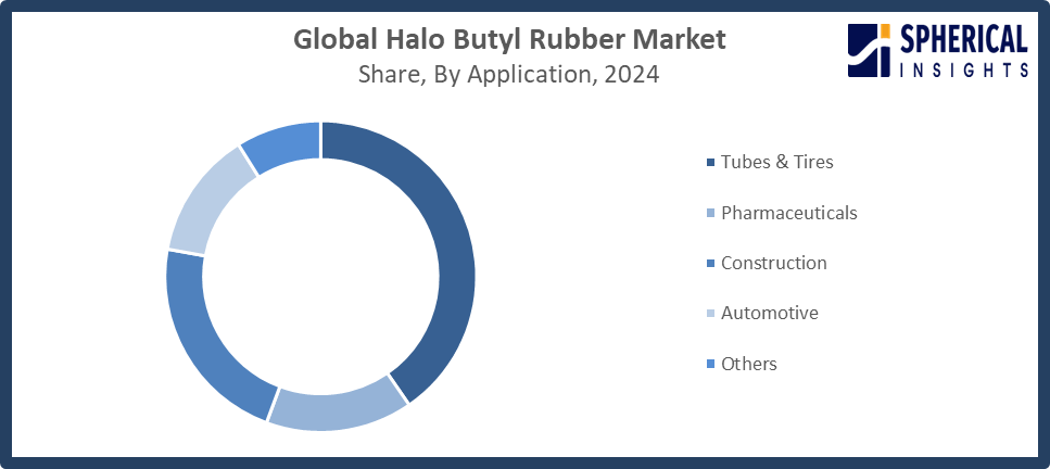 Based on the type, the halo butyl rubber market is divided into chloro-butyl rubber, bromo-butyl rubber, and others. Among these, the bromo-butyl rubber segment accounted for the largest share in 2024 and is anticipated to grow at a significant CAGR during the forecast period. The bromo-butyl rubber market is driven by its improved compatibility with different polymers, air impermeability, and greater chemical resistance. Additionally, the market for bromo-butyl rubber is developing owing to the healthcare and automotive industries' rising need, the regulatory focus on product safety, and the continuous development of polymer modification technologies that improve durability and performance.