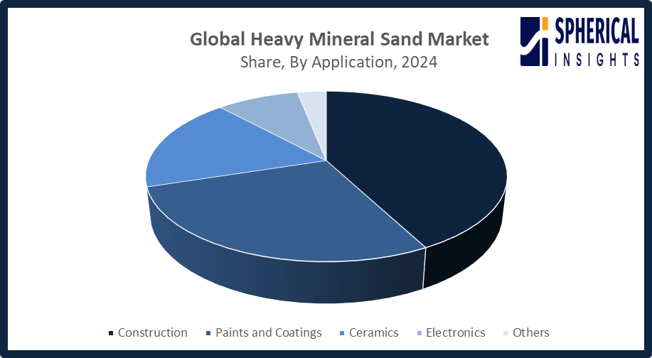 Based on the mineral type, the heavy mineral sand market is divided into ilmenite, rutile, zircon, monazite, garnet, and others. Among these, the ilmenite segment dominated the market in 2024 and is projected to grow at a substantial CAGR during the forecast period. The ilmenite segment dominated the market due to its high demand for producing titanium dioxide, which is a key ingredient in paints, coatings, plastics, and paper. The rapid growth of construction and infrastructure projects globally has increased demand for products based on titanium dioxide. Besides these, abundant availability, relatively lower cost compared to rutile, and increasing use in welding electrodes and titanium metal production further solidify the leadership and growth momentum of ilmenite.