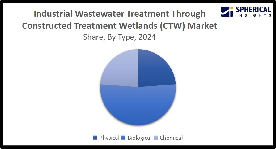In the industrial wastewater treatment through constructed treatment wetlands (CTW) market, the biological segment dominates the market and is expected to grow at a CAGR of 7.8% during the forecast period. This is because they rely on the principle of using microorganisms to break down the pollutants in wastewater. Constructed treatment wetlands (CTWs) for industrial wastewater use microbes like bacteria or fungi that live on plant roots and within the soil substrate for degrading organic matter, while plants facilitate oxygen transfer and nutrient uptake. Physical type emphasizes on separating suspended solids, oils, grease, and other non-dissolved pollutants using physical forces such as gravity, buoyancy, and mechanical barriers.