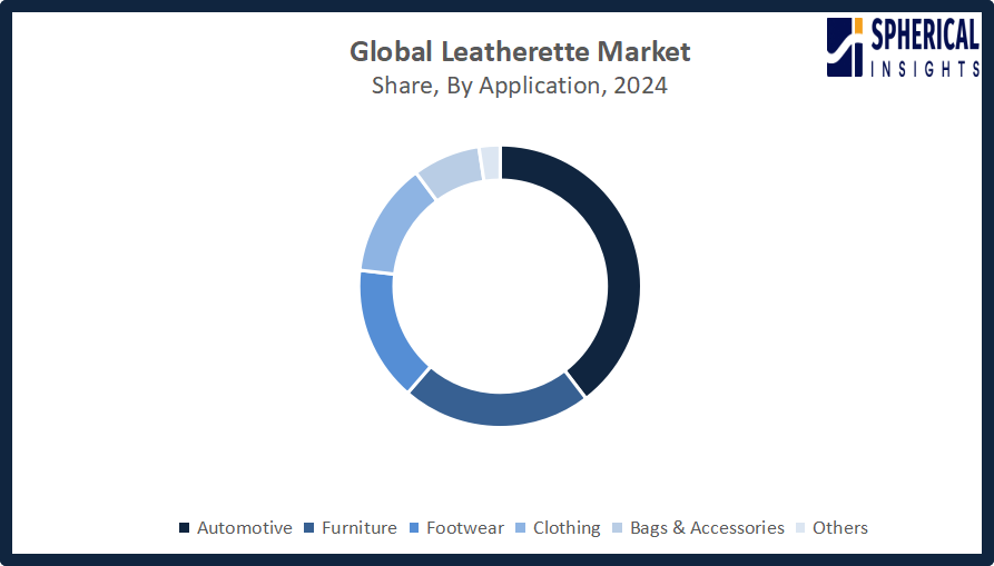 Based on the application, the Global Leatherette Market Size is divided into automotive, furniture, footwear, clothing, bags & accessories, and others. Among these, the automotive segment accounted for the largest share in 2024 and is anticipated to grow at a significant CAGR during the forecast period. PU leatherette, which consists of fabric coated with polyurethane, delivers better softness and flexibility compared to PVC materials. The material enjoys widespread usage because it offers excellent performance while its production process maintains a moderate environmental impact. The automotive industry uses PU leatherette in high-end interior design because it provides a luxurious appearance and long-lasting performance, and a simple cleaning process.