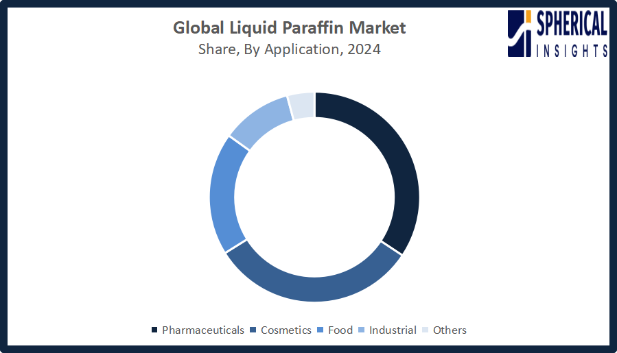 Based on the application, the Global Liquid Paraffin Market Size is divided into pharmaceuticals, cosmetics, food, industrial and others. Among these, the pharmaceuticals segment accounted for the largest share in 2024 and is anticipated to grow at a significant CAGR during the forecast period. The pharmaceuticals segment accounted for the largest share due to the extensive use of liquid paraffin in laxatives, ointments, and medicinal formulations. The pharmaceuticals sector leads global liquid paraffin usage because of rising healthcare spending, increasing need for safe, high-purity excipients and growing rates of digestive and dermatological disorders.
