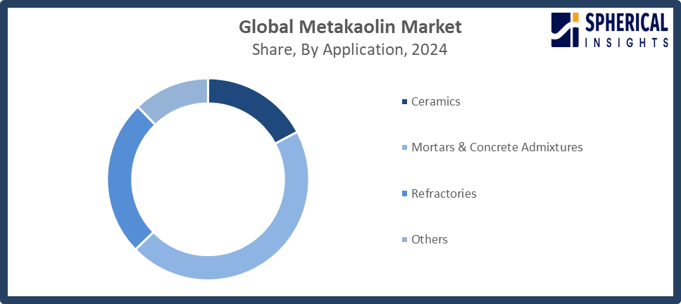 Based on the application, the metakaolin market is divided into ceramics, mortars & concrete admixtures, refractories, and others. Among these, the mortars & concrete admixtures segment accounted for the highest market revenue in 2024 and is anticipated to grow at a significant CAGR during the forecast period. The mortars & concrete admixtures segment is propelled by the growing need for high-performance, durable, and green building materials. The mortars & concrete admixtures are driven by the ongoing construction of infrastructure, urbanization, and government actions that support the use of low-carbon and eco-friendly building solutions worldwide.