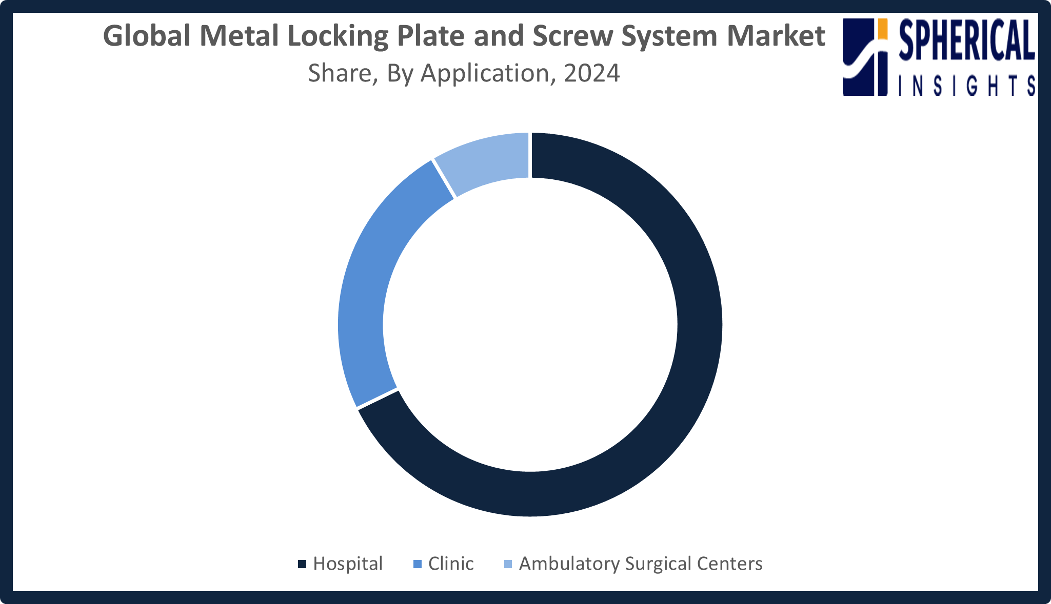 Based on the application, the metal locking plate and screw system market is divided into hospital, clinic, and ambulatory surgical centers. Among these, the hospital segment accounted for the largest share in 2024 and is anticipated to grow at a significant CAGR during the forecast period. The hospital industry accounts for the majority of this market, given the large number of orthopedic and trauma-related surgical interventions conducted in this sector. The infrastructure and support necessary for successful management, such as orthopedic surgeons and urgent care facilities, for the use of metal locking plate and screw systems contribute to the high demand for metal locking plate and screw systems.