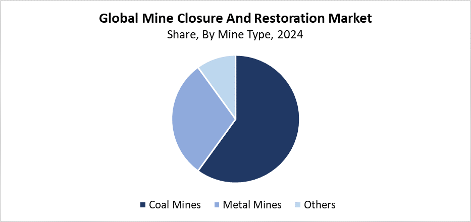 The coal mines segment held the largest revenue share and led the mine closure and restoration market during 2024. The worldwide spread of coal mining operations, along with increasing environmental restoration efforts after coal mine shutdowns, has established this dominant position. Coal mining operations create various major environmental problems, which include habitat destruction, water pollution, and land deterioration that require extensive closure and restoration actions. Regulatory bodies maintain strict standards which coal mine operators must follow to achieve proper rehabilitation of mining sites. The global shift toward clean energy has created a rising demand for closure and restoration services because coal mines shut down at an increasing rate. The segment leads the market because coal mine reclamation projects need complex and extensive work. Businesses fund to meet environmental standards and achieve sustainable land restoration.