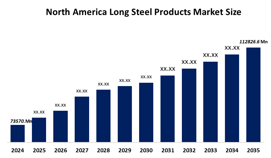 What is the North America long steel products market size?North America long steel products market size is expected to grow from USD 73570.1 Million in 2024 to USD 112826.6 Million by 2035, growing at a CAGR of 3.96% during the forecast period 2025-2035.