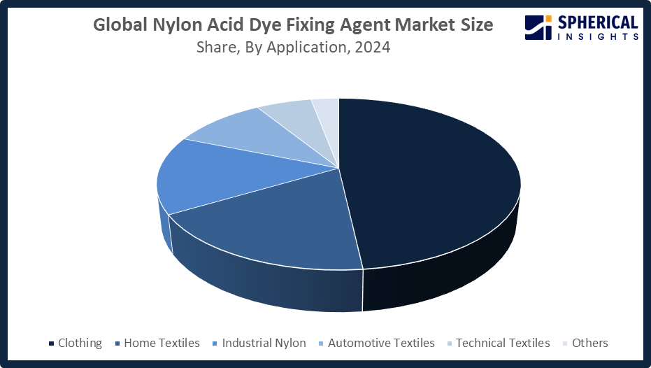 Based on the formulation type, the nylon acid dye fixing agent market is divided into liquid concentrate, powder form, emulsion type, solid granules, and others. Among these, the liquid concentrate segment dominated the market in 2024 and is projected to grow at a substantial CAGR during the forecast period. The liquid concentrate segment led the nylon acid dye fixing agent market due to its handling, excellent solubility and even distribution in dye baths. Its effectiveness, interaction with nylon fibers and suitability for automated textile dyeing processes make it favored by producers, encouraging broad usage and contributing to notable market expansion