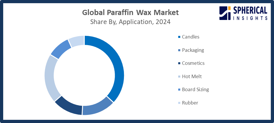Based on the application, the Paraffin Wax Market Size is divided into candles, packaging, cosmetics, hot melt, board sizing, and rubber. Among these, the candles segment accounted for the highest market revenue in 2024 and is anticipated to grow at a significant CAGR during the forecast period. The market for candles is driven by consumers' ongoing desire for religious, fragrant, and ornamental candles in both developed and developing nations. Demand for luxury and artisanal candles has increased due to shifts in lifestyle toward wellness, aromatherapy, and home decor.