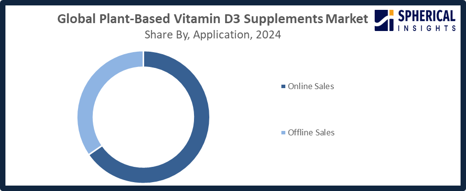 Based on the application, the plant-based vitamin D3 supplements market is divided into online sales and offline sales. Among these, the online sales segment accounted for the highest market revenue in 2024 and is anticipated to grow at a significant CAGR during the forecast period. Online supplement purchases have increased due to the expansion of e-commerce and the growing consumer preference for home delivery of nutritious products. Digital platforms provide a range of products, clear ingredient information, and replenishment services based on subscriptions.