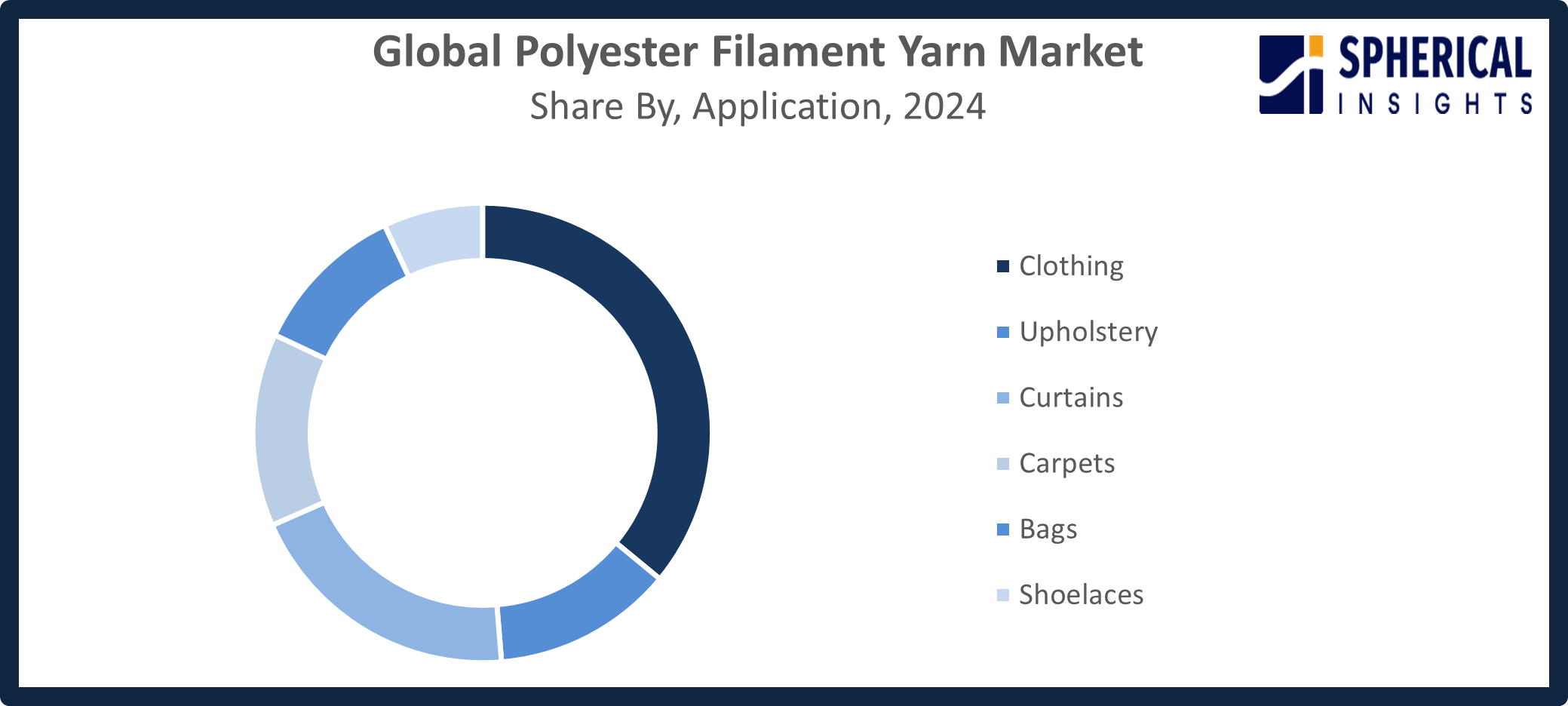 Based on the application, the polyester filament yarn market is divided into clothing, upholstery, curtains, carpets, bags, and shoelaces. Among these, the clothing segment accounted for the highest market revenue in 2024 and is anticipated to grow at a significant CAGR during the forecast period. Growing fashion trends and the need for strong, lightweight materials are the main drivers of the clothing sector. For clothing ranging from casual wear to sportswear and formal attire, polyester is highly favored due to its durability, wrinkle resistance, elasticity, and ease of maintenance.