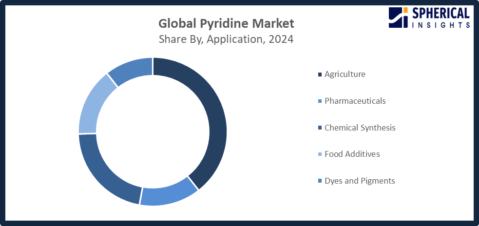 Based on the form, the pyridine market is divided into liquid, solid, and gas. Among these, the liquid segment accounted for the largest share in 2024 and is anticipated to grow at a significant CAGR during the forecast period. Liquid pyridine's dominance in modern markets is further supported by rising demand for specialized chemicals and improvements in purification and production technology. Due to its solvency qualities, it is preferred for use in industrial solvents and the production of agrochemicals. Liquid pyridine's versatility allows it to successfully satisfy a wide range of customer needs.