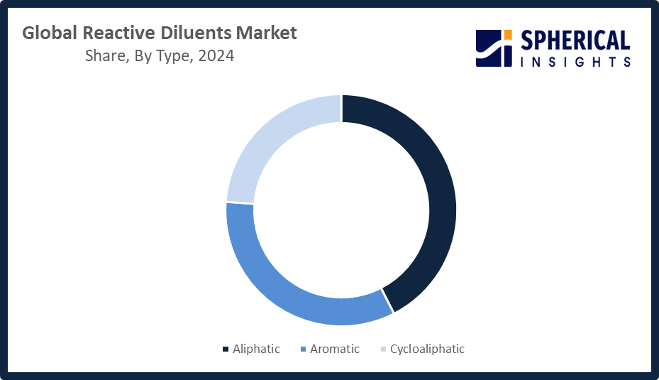 Based on the type, the reactive diluents market is divided into aliphatic, aromatic, and cycloaliphatic. Among these, the aliphatic segment dominated the market in 2024 and is projected to grow at a substantial CAGR during the forecast period. Aliphatic dominated the growth of the marketplace, owing to its greater flexibility, resistance to weathering, non-toxicity, and economical nature. Its extensive applications in coatings, adhesives, sealants, and elastomeric overlays, coupled with the rise in demand from the construction and automobile sectors, are primarily driving the increased acceptance and subsequent growth of the marketplace.