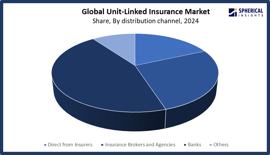 Based on the distribution channel, the unit-linked insurance market is divided into direct from insurers, insurance brokers and agencies, banks, and others. Among these, the banks segment accounted for the largest share in 2024 and is anticipated to grow at a significant CAGR during the forecast period. The dominance is due to the wide reach and long standing trust that banks have built with their clientele. Unit-linked insurance plans can be successfully marketed and sold by banks by utilizing their current clientele, strong distribution networks, and well established financial consulting services.